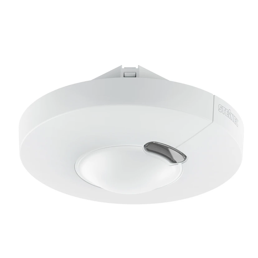 Motion detector HF 3360 round PF (potential-free) Flush-mounted This HF 3360 high-frequency motion detector is unstoppable. It is ideal for cellar corridors, stairwells, multi-storey car parks and much more and is ideally installed at a height of 2.80 metres. The sensor detects movements all around at a 360° angle and at a distance of 1 - 8 metres (radial), regardless of temperature thanks to HF sensor technology. It also penetrates glass, wood and lightweight walls. The sensor detects the smallest movements reliably and precisely, thus ensuring perfect automatic light control - even in stairwells over 2 floors - Round version, PF (potential-free), flush-mounted - Detection range for ceiling mounting 360°, wall mounting 180° - Response brightness adjustable from 1 - 1000 lux - Range 1 - 8 metres - Light duration adjustable from 5 seconds to 15 minutes