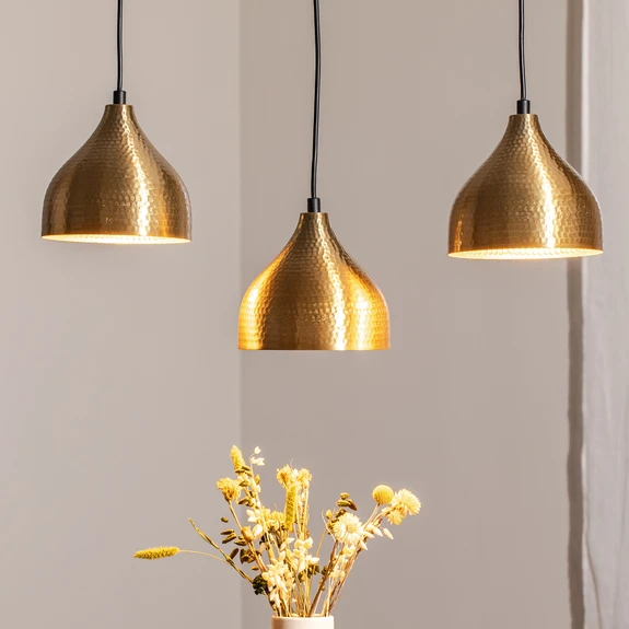 A special feature of this light is that it can be dimmed using an external dimmer, allowing the light intensity to be adjusted flexibly. Manufactured in Europe, the Tattoo 6214 pendant light stands for quality and craftsmanship. The golden colour gives the room a warm and inviting atmosphere, while the robust metal material guarantees durability.
