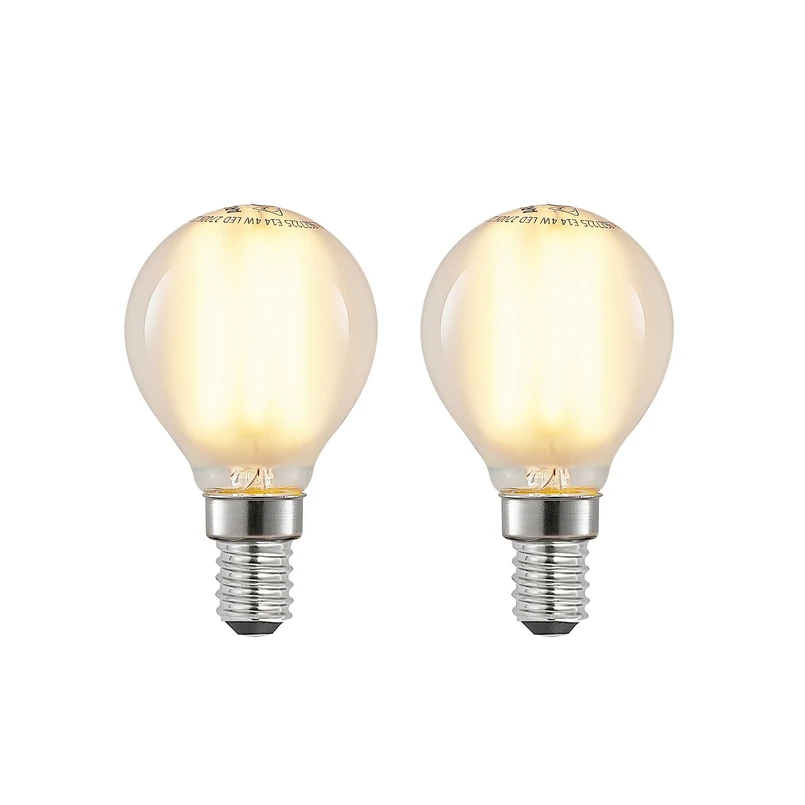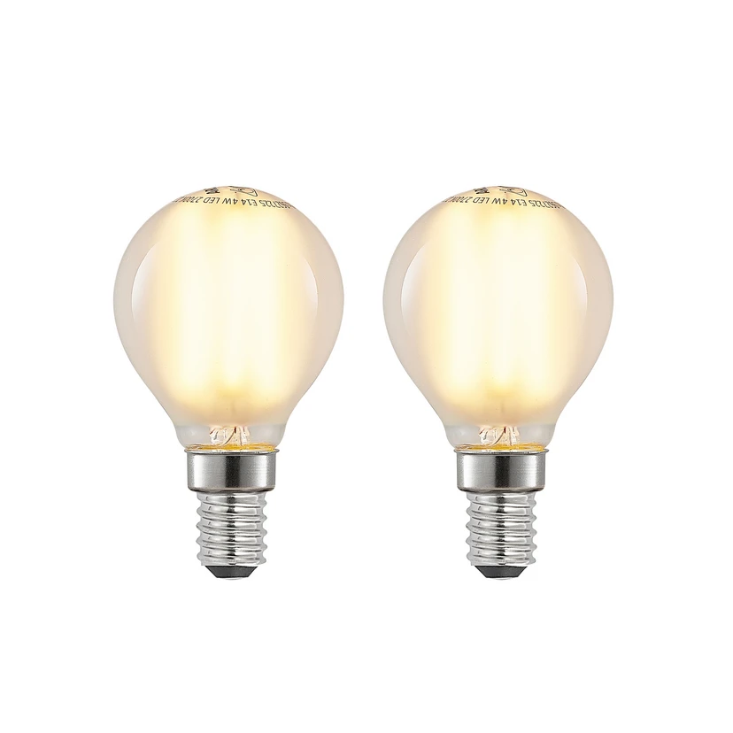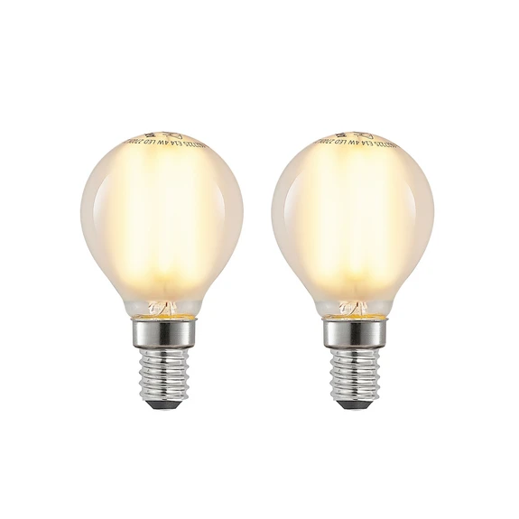 LED lamp E14 4 W, warm white light color (2,700 K) with frosted surface in set of 2This LED lamp presents itself in a frosted surface, so that no glare can occur. It is low in consumption and its brightness can be adjusted via a conventional wall dimmer.- dimmable with phase cut dimmer- the LED drop lamp is supplied in a convenient set of 2