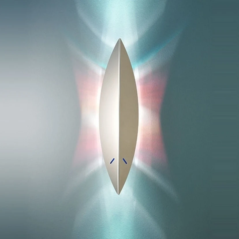 Unusual AFRIQUE wall light with a fascinating play of colours This designer piece exudes a touch of extravagance and a mystical glow. Die wall light is made of stainless steel and Glas. Its height measures an impressive 62 centimetres. The light casts an exciting, coloured glow on the wall and casts a spell over the viewer. The special diffusion is caused by the narrow slits in the housing inserted at the lower end, which are covered with a choice of blue or red glass. Note: The coloured glow of light shown in the article photo is not affected by the choice of glass colour. Timeless Klassiks from Stile eras such as Bauhaus and Art Decó as well as works by contemporary artists make up the range of this German lighting manufacturer. the company was founded by Walter Schnepel in 1979. It started with a famous model: the table lamp designed in 1924 by the then Bauhaus student Wilhelm Wagenfeld, which is now one of the best-known Bauhaus classics, was reissued. The programme also includes other reproductions by Bauhaus artists such as the Hungarian Gyula Pap and Marianne Brandt; in addition, the manufacturer is dedicated to Art Decó works and pieces by modern designers from the present day, such as Walter Schnepel himself.