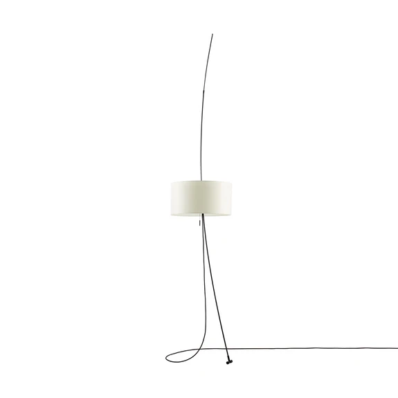 Unusual Totora floor lamp with flexible carbon fibre rod and cotton shadeWith its classic cylindrical shade made of cotton textile, the Totora floor lamp by the Spanish artist Cristina Figarola exudes a homely touch. At the same time, the floor lamp is also an extravagant eye-catcher. This is ensured by the flexible carbon rod that extends between floor and ceiling and adapts to room heights of up to 350 cm. In addition, the position of the shade can be adjusted along the rod. The lamp is operated via the switch, which is located on the lamp sockets inside the shade.