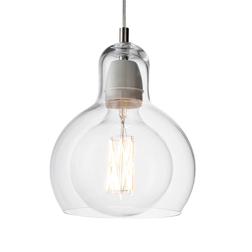 Modern designer pendant light inspired by the traditional light bulb With her pendant light, Danish light artist Sofie Refer has paid homage to the old-fashioned light bulb, which is now being replaced almost everywhere by LED bulbs. The shape of the lampshade is reminiscent of the typical light bulb shape. The light also emphasises the importance of the bulb with its transparent lampshade and clear view of the inner workings. Ideally, a decorative bulb, e.g. a filament bulb, should be used here. The glass shade is mouth-blown and may have various differences or irregularities, but these are a typical sign of craftsmanship and make each light unique. &Tradition is a Danish company that manufactures lights and furniture. As the company name suggests, Tradition and classic designs play a major role - but also new, modern designs that are timeless. The Bulb lighting series by Sofi Refer is an example of the latter.