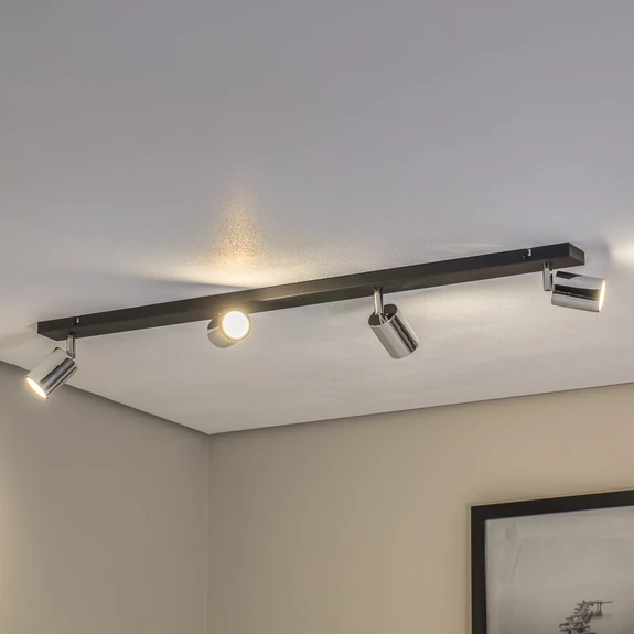 Tune II ceiling lamp, black/chrome, metal, 4-bulb, elongated
