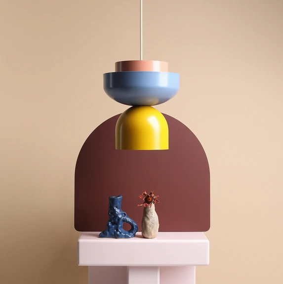 The Ulia pendant light combines modern design with a vibrant colour palette of yellow, blue and coral. Made from high-quality metal, this light adds a stylish touch to the dining room and creates a welcoming atmosphere. Manufactured in Europe, the light impresses with its special workmanship and the interplay of form and colour.