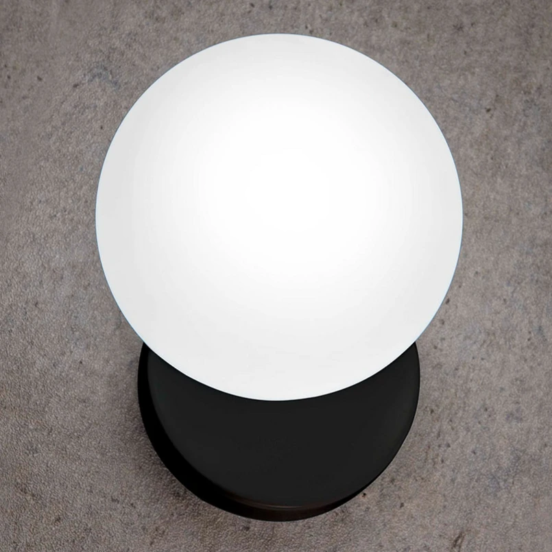 Harmonious, round Tin Tin wall lamp With the round design of the lampshade and wall bracket, Italian designer Roberto Giacomucci has created a restrained appearance that is suitable for many different living spaces furnished in a modern style. The spherical lampshade made of white frosted glass is attached to a metal bracket in the shape of a disc, which refracts the light and turns the Tin Tin wall lamp into an even and glare-free light source.